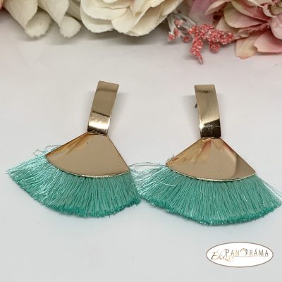 Fashion bojtos beszúrós fülbevaló - arany menta zöld legyező