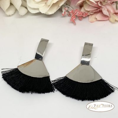 Fashion bojtos beszúrós fülbevaló - ezüst fekete legyező