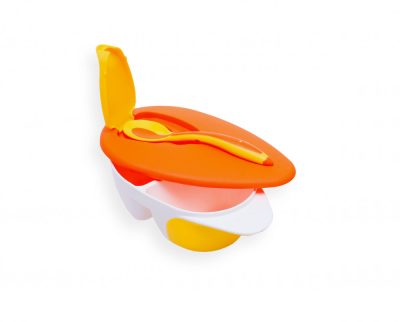 Fedeles etető tányér kanállal - narancs