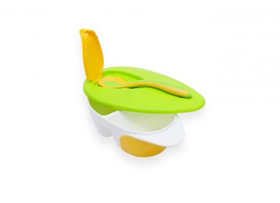 Fedeles etető tányér kanállal - zöld