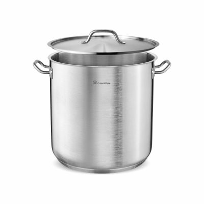 A CaterWare fedő kiváló minőségű 18/0 rozsdamentes acélból készült (18% króm, 0% nikkel), így biztonságos a nikkelallergiás személyek számára. Szatén kivitele elegáns megjelenést kölcsönöz, az ergonomikus mélyedés és a dübelfogantyú nélküli rögzítés pedig kényelmes használatot biztosít. Illeszkedik minden CaterWare edényhez, serpenyőhöz és láboshoz, és mosogatógépben is mosható.