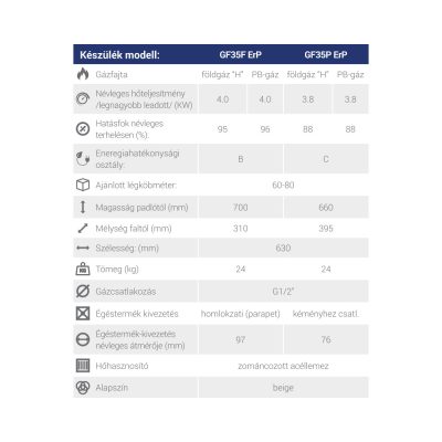 • FÉG GF35P ERP kéményes gázkonvektor bézs színben, 3.8 kW
