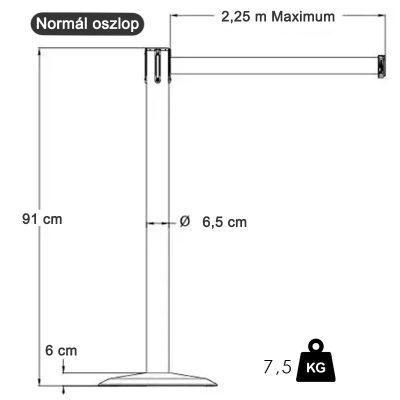 • Fehér kordonoszlop, 225cm fekete szalagkazettával, 7,5kg (NO-white)