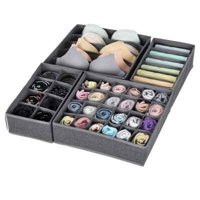 Fehérneműtároló doboz Fiókrendező Összecsukható gardrób elrendezési rendszer szekrényhez, melltartókhoz, fehérneműhöz, zoknikhoz, nyakkendőhöz, összecsukható doboz, szövetdoboz, 4 db-os készlet, sötétszürke
