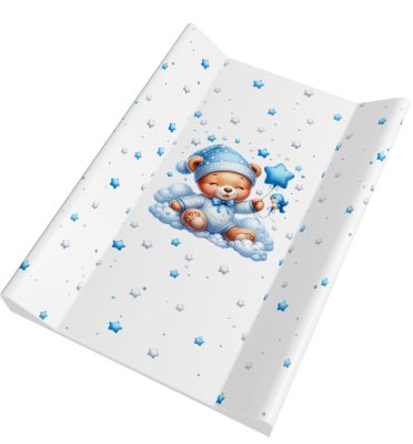 Felhős Maci – Pelenkázólap merev peremes 70×50 cm | Kék színvilág, felhőn alvó kismackóval