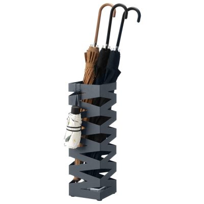 Fém esernyőtartó, négyzet alakú esernyőtároló, 4 kampós és kivehető vízgyűjtő tálca, 15,5 x 15,5 x 49 cm, antracit:
