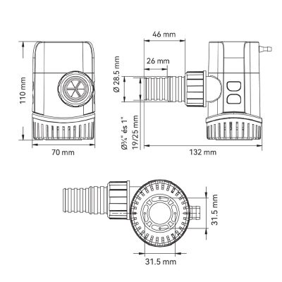 A szivattyú felszerelhető egyenes (tartozék) vagy 90 fokos (rendelhető) csőcsonkkal is. Az új innovatív gyorscsatlakozós kialakításnak köszönhetően a szűrőkosár és motor pillanatok alatt lepantintható és tisztítható.