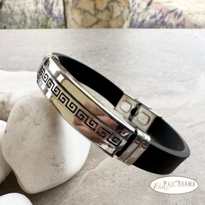 Nemesacél férfi karkötő, kaucsuk szíjjal, biztonságos kapcsolóval.
