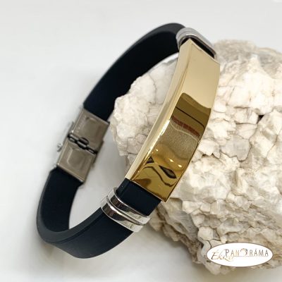 Nemesacél férfi karkötő kaucsuk kombinációval. Igazán fiatalos, férfias, sportos viselet.