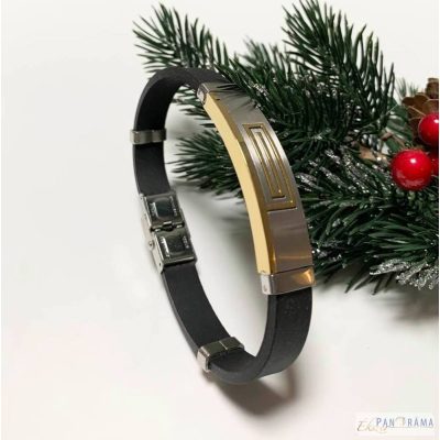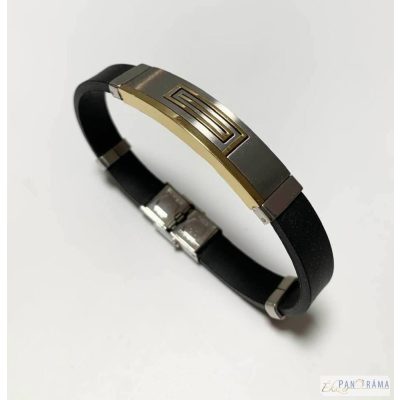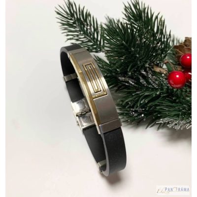 Rozsdamentes acéllal és fekete szilikon gumival kombinált férfi karkötő. Igazán fiatalos, férfias, sportos viselet.