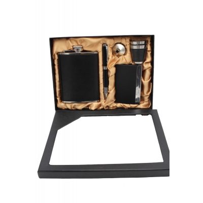 Leírás: Szett tartalma:8oz bőrös flaska 2db bőrös kupica kiöntő toll fém névjegykártya tartó