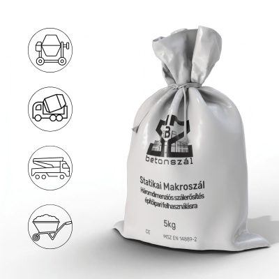 • Fiber szál, beton erősítő szál. 5 kg/zsák. Statikai makrószál (42-45 mm) - adalék betonozáshoz acélháló helyett