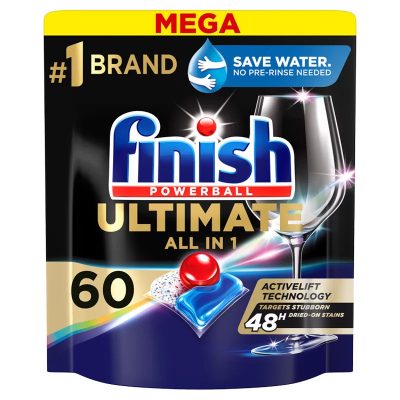 A Finish Ultimate All In One kapszula elhozza az Ultimate tisztaságot és ragyogást mosogatógépébe. 3 gyorsan feloldó kamra, amely még az ökociklusban is eredményes. Az új formulánk zsírtalanít, a rászáradt ételmaradékokat célozza és a Finish folyékony powerball az ultimate csillogást biztosítja. Csomagolásmentes, biológiailag lebomló, 100%-ban vízben oldódó bevonattal.