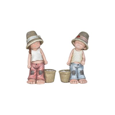 Fiú,lány kaspóval kerámia 27x46cm rózsaszín kék 2 féle