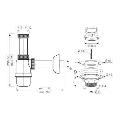 FixTrend buraszifon mosdóhoz, műanyag, leeresztőszeleppel, 32mm