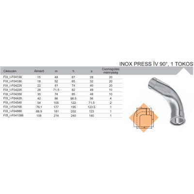 • FixTrend Inox press 1 tokos ív 90°, 28 mm
