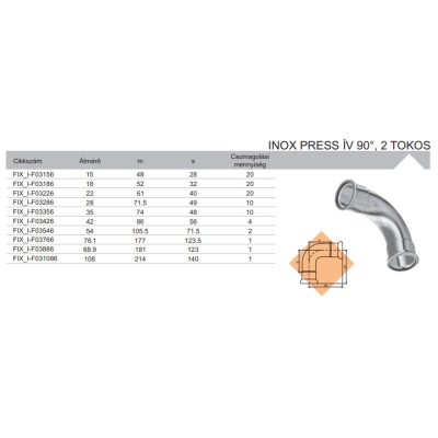 • FixTrend Inox press 2 tokos ív 90°, 54 mm