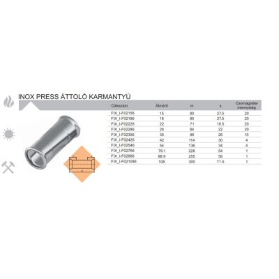 FixTrend Inox press áttoló karmantyú, 54 mm