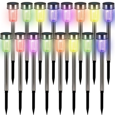Földbe szúrható napelemes kerti lámpa 16 darabos színes szolár lámpa rozsdamentes acél