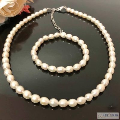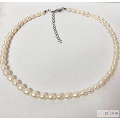 Elegáns, fehér színű folyami gyöngyökből álló nyaklánc