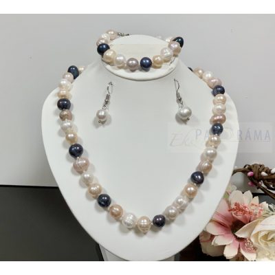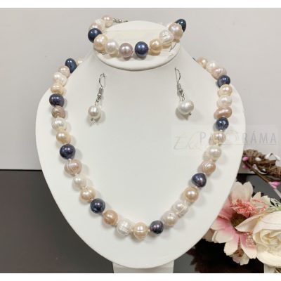 • Folyami Gyöngy Nyaklánc és Karkötő Szett - Carmen tricolor