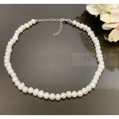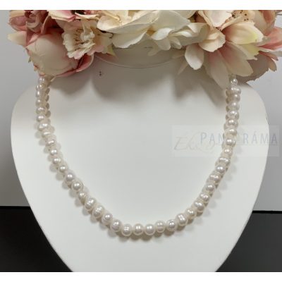 Elegáns, fehér színű folyami gyöngyökből álló nyaklánc.