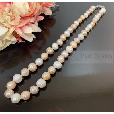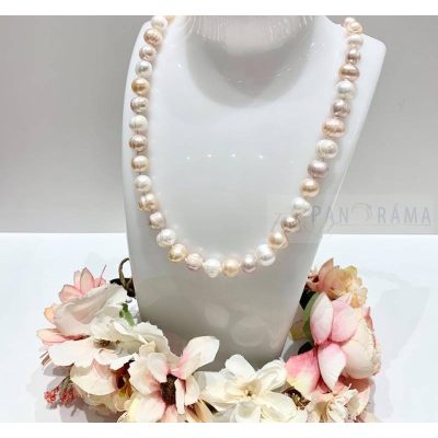 Elegáns, fehér, rózsaszín és barack színű folyami gyöngyökből álló nyaklánc.