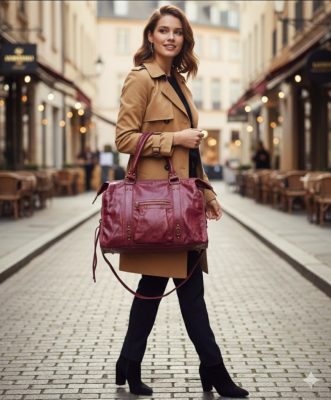Ez a táska igazi karakteres darab, amely az olasz bőrdíszművesség rusztikus, mégis elegáns stílusát ötvözi. A képen látható modell egy vintage hatású, mélyvörös (bordó) bőrtáska, amely egyszerre funkcionális és stílusos kiegészítő.