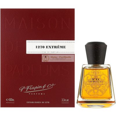 A Frapin 1270 Extrême Eau de Parfum egy uniszex illat, amely a Frapin család 1270-es Charente régióba telepedésének állít emléket. Az illat a márka gazdag konyakörökségét tükrözi, ötvözve a gyümölcsös, mézes és fás jegyeket egy luxus, kerek és erőteljes kompozícióban. A Frapin 1270 Extrême Eau de Parfum egy gazdag és kifinomult illat, amely a gyümölcsös és mézes jegyeket ötvözi a fás és gourmand akkordokkal. A nyitányban az ananász és alma édes frissessége, valamint a bergamott citrusos jegyei érezhetők, melyeket az elemi gyanta fűszeres melegsége egészít ki. A szívjegyekben a szőlővirág, rózsa és jázmin sambac virágos harmóniája bontakozik ki, míg a cédrus fás jegyei mélységet adnak az illatnak. Az alapjegyekben a guajakfa és pacsuli földes tónusai, a tonkabab édes fűszeressége és a vanília krémes melegsége hosszan tartó, érzéki lecsengést biztosítanak. Ez az illat tökéletes választás azok számára, akik egy elegáns, gazdag és tartós parfümöt keresnek.