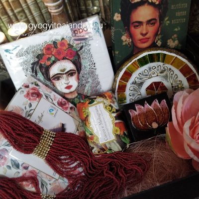 Frida Kahlo ajándékcsomag egy különleges hölgynek szól egy különleges hölgytől. Frida mexikói művésznő volt, egyedi világnézetével és zseniális alkotásaival, festményeivel a 20. század egyik legjelentősebb asszonya, a popkultúra kiemelkedő alakja. Ikonikus alakja egybeolvadt a lázadással, a nőiességgel, az egyediség fogalmával. "Merj élni, meghalni bárki tud" - mondta, és milyen igaza volt! Frida sok szenvedélye és "hobbija" közül talán az egyik legkevésbé ismert az ételek iránti lelkesedése. A legendás festőnő gyakran adott férjével közös házában lakomákat, ahol a saját maga készítette specialitásokkal, ételekkel és a italokkal nyűgözte le vacsoravendégeit. Ebben az ajándékcsomagban megtaláljátok Frida füveskönyvét, mely nem csak egyszerű recept könyv. Sokkal mélyebb, az életében nagyon hamar bekövetkezett drámai fordulathoz kötődő napló, egy dokumentum, mely a Halállal köttetett egyezségének állít emléket.