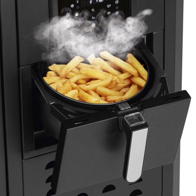 Azonban a legfontosabb tulajdonsága a beépített, 3 literes, LED-kijelzővel ellátott forrólevegős sütő, amellyel a grill menüjéhez olyan finomságokat adhatunk, mint a ropogós nuggetsek, chipsek vagy burgonyaszeletek, mindezt pedig gyakorlatilag olaj nélkül.