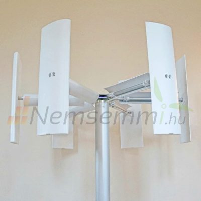 Telepítheti a kertbe, lakókocsira, hajóra, tanyára, mindenféle engedély nélkül.nA függőleges tengelyű generátornál nincs vezeték felcsavarodási probléma, kialakításának köszönhetően kis szélnél is elkezd termelni, ugyanakkor nincs túlpörgés veszély, extém nagy szél esetén a széliránnyal átellenes oldali lapátok fékeznek a szél hatására.