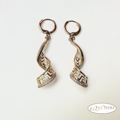 18K Gold Filled antiallergén lógós spirál alakú fülbevaló apró fehér cirkónia kővel és görög mintával díszítve ! Fém érzékenység esetén is viselhető! A fülbevaló kiváló ajándékozásra, öltözékünk remek kiegészítője.