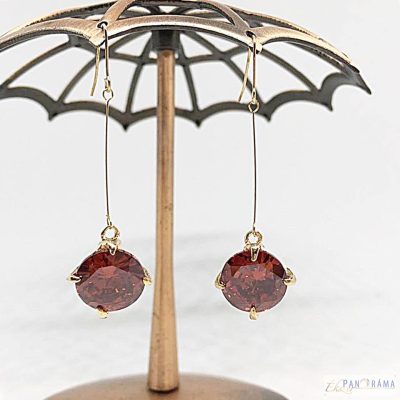 Arany színű bevonatú bizsu divatékszer kör alakú piros színű csillogó üvegkristállyal. Hossza: 5cm