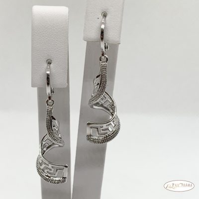 White Gold Filled antiallergén lógós spirál alakú fülbevaló apró fehér cirkónia kővel és görög mintával díszítve ! Nikkel érzékenység esetén is viselhető! A fülbevaló kiváló ajándékozásra, öltözékünk remek kiegészítője.