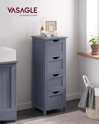 Fürdőszoba szekrény, szabadon álló, 4 fiókos, modern stílus, szürke 30x30x82cm