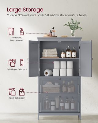 Fürdőszobai szekrény 2 fiókkal és 2 ajtóval, állítható polccal, galambszürke