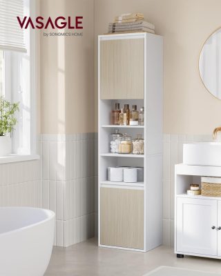 • Fürdőszobai szekrény falra szerelhető, magas fürdőszobai fali szekrény, fehér és bézs