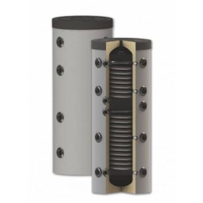 Fűtési keskeny puffer tároló - 2 hőcserélővel hőszigetelt 200 literes tartály melegvíz tárolás céljára. Sunsystem PS2 200