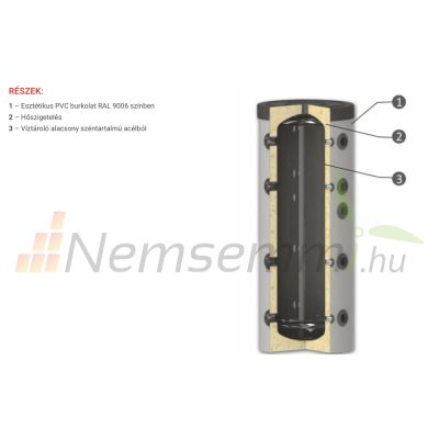 Minden tárolón található csatlakozás, amelybe elektromos fűtőbetét szerelhető (3kW).