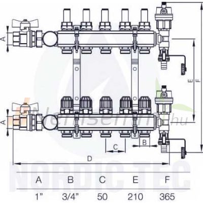 • Fűtési osztó-gyűjtő 5 körös áramlásmérős fűtési elosztó padlófűtés számára