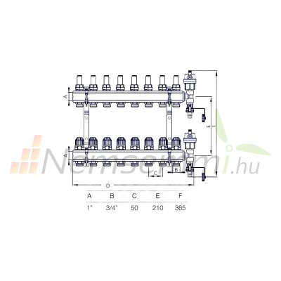 • Fűtési osztó-gyűjtő 8 körös fűtési elosztó