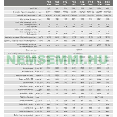 • Fűtési puffer tároló - 2 hőcserélővel 3000 literes tartály melegvíz tárolás céljára. Sunsystem PR2 3000