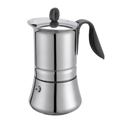 Elegáns, rozsdamentes acélból készült kotyogós kávéfőző.