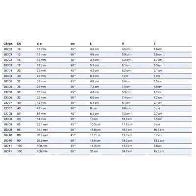 A Geberit Megapress idomok felhasználási területétől függően áttekinthető adatok