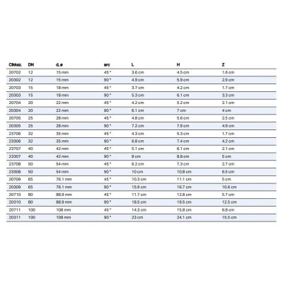 A Geberit Megapress idomok felhasználási területétől függően áttekinthető adatok