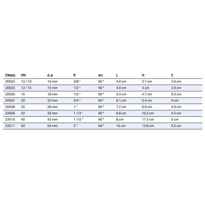 A Geberit Megapress idomok felhasználási területétől függően áttekinthető adatok