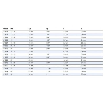A Geberit Megapress idomok felhasználási területétől függően áttekinthető adatok