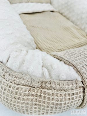 Georgia babafészek szett – mogyoró bézs waffle pamut és krém wellsoft a puha ölelésért