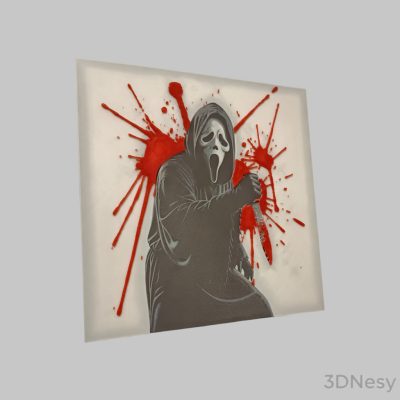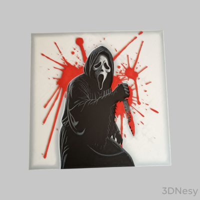 A Scream ikonikus maszkos figurája kel életre ezen a Hueforge képen. A réteges színek hatására hátborzongató és látványos dekoráció születik, tökéletes választás horrorrajongóknak és Halloween hangulathoz.